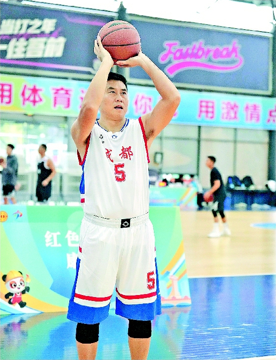 在成都市職工代表隊中年組的陣容里,身著5號球衣的姜浩正奔跑賽場、精準投籃。他是一名普通的網約車駕駛員,幾天前,他還手握方向盤,穿梭在成都的街頭巷尾。