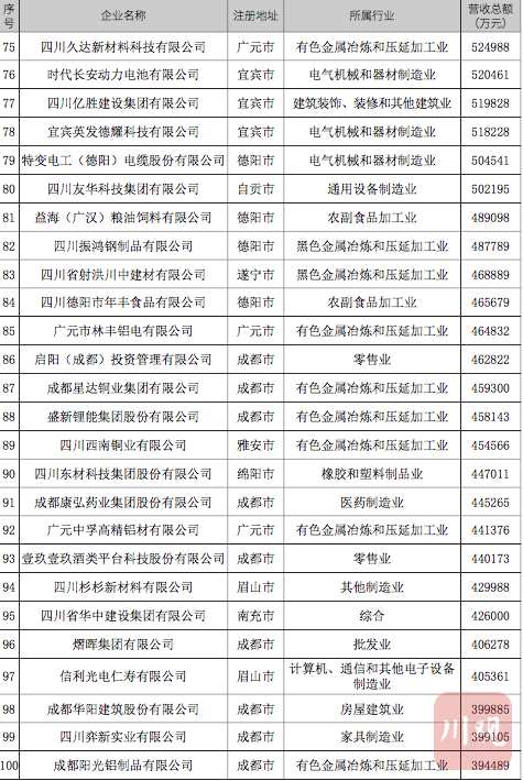其中,制造業民企前5強分別是:通威集團有限公司、其亞集團有限公司、新希望六和股份有限公司、四川省川威集團有限公司、藍潤集團有限公司。