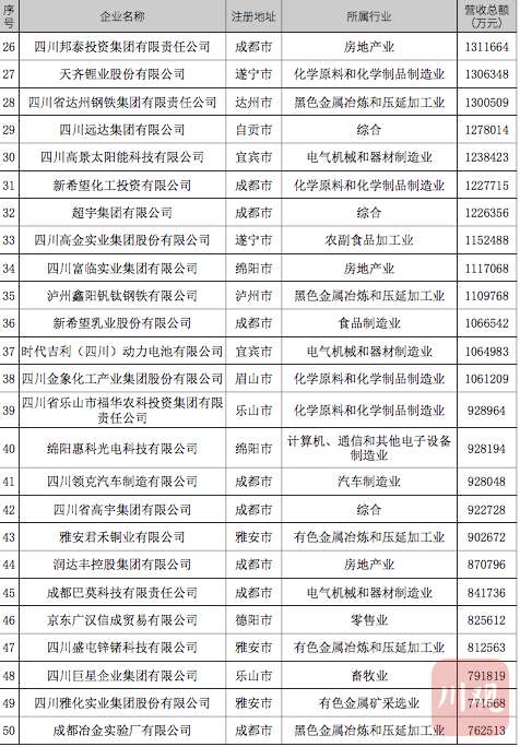 “2025四川民營企業100強”榜單發布 前三強排名有變化