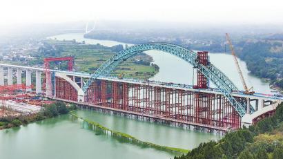 大橋合龍后,將轉入橋面及附屬設施施工,預計明年5月啟動鋪軌工作。目前,成渝中線高鐵全線工程進展順利,包括沱江特大橋在內的“兩隧一橋”控制性工程均按施工進度有序推進。